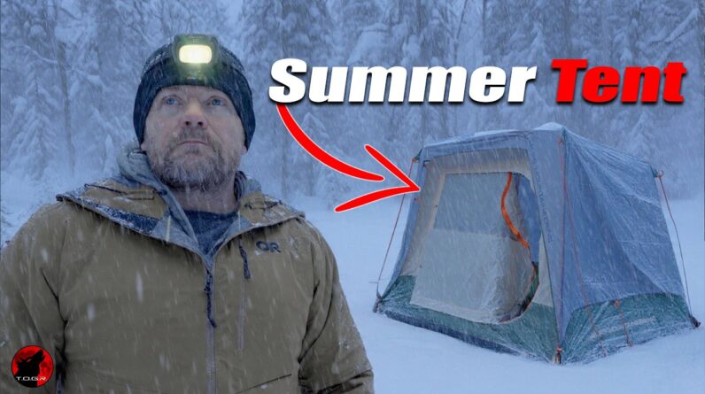 Luckily Luke’s Cot Tent has been set up as a winter storm begins to turn the world white.