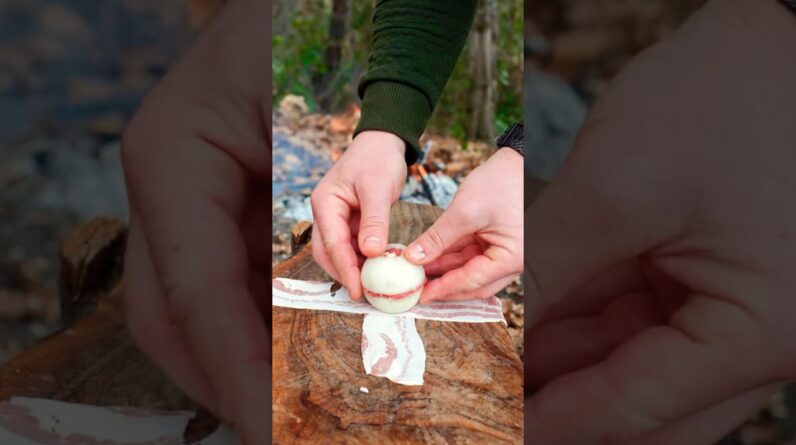 Join us for some incredible outdoor cooking as we prepare a delicious bacon wrapped onion stuffed with ground beef. This food video features an easy recipe for a tasty treat, showcasing various grilling techniques over a campfire. Get ready for a satisfying experience perfect for your next adventure!