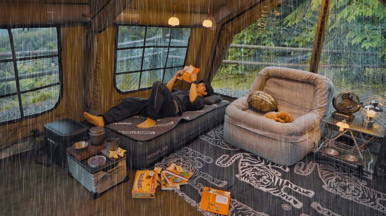 #camping #rain #inflatabletent #dog #asmr