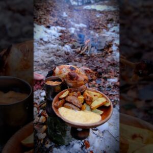 Today Iām cooking survival food in the mountains: chicken wrapped in clay and foil, slow-roasted over the fire, and potatoes with a rich cheese sauce. Only natural sounds ā crackling…
